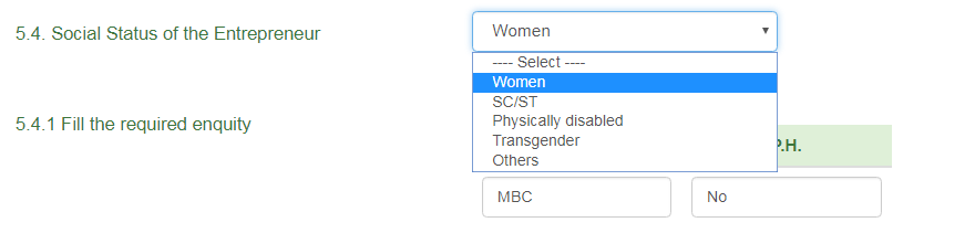 Select the dropdown box and then select the Social Status of the Entrepreneur.