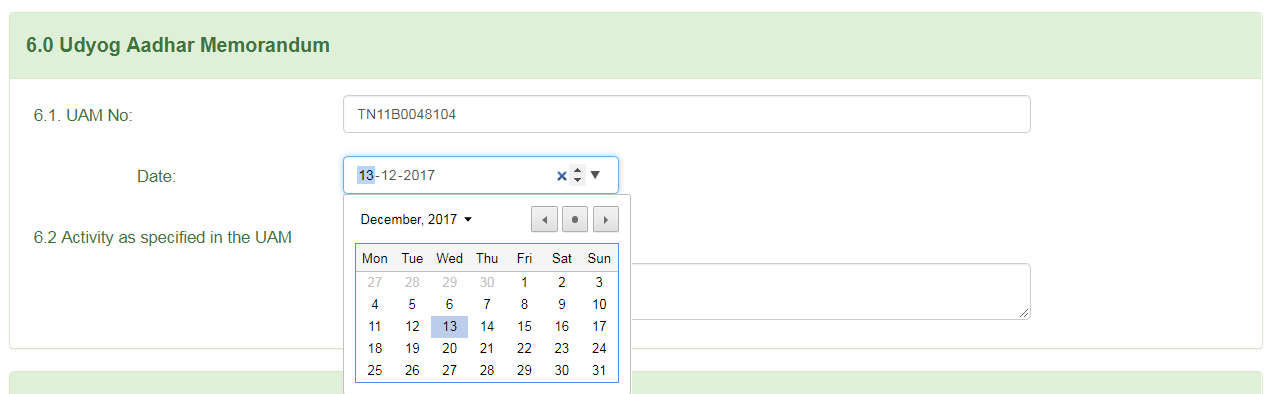 6.2 Activity as specified in the Udyog Aadhar Memorandum: