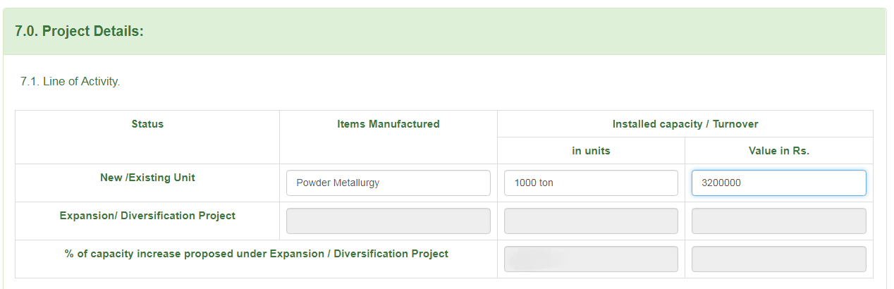 • Data once entered will be taken as the final data for processing the capital subsidy application and arriving at the eligibility of the unit. No alterations/corrections will be entertained at a later date.