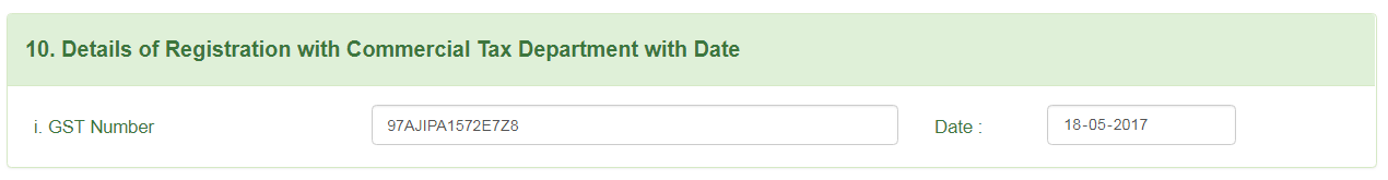 Fill in the details of Registration with Commercial Tax Department with Date in the respective Boxes.