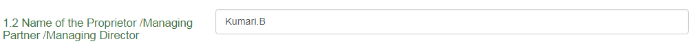 1.2 Name of the Proprietor /Managing Partner /Managing Director: