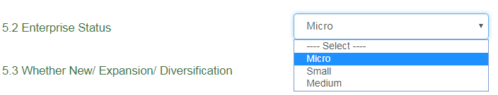 Select the dropdown box and then select whether the enterprise is New/ Expansion/ Diversification.